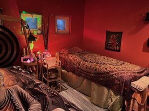 Du betrittst den heiligen abgedunkelten Tempel, spürst die kuschelige Wärme, siehst die vielen kleinen Lichter an der Decke und die Kerzen und wir trinken entspannt einen Tee und bei einem persönlichen Vorgespräch kannst Du Deine Intension oder auch anstehende Probleme erzählen, wenn Du magst.